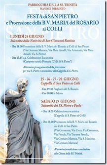 | FESTA DI SAN PIETRO e Processione della B.V. DEL ROSARIO ai Colli Piano di Sorrento – Parrocchia di Trinità da lunedì 24 a sabato 29 giugno -